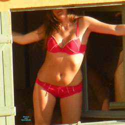 One pretty neighbor in sexy red... Only one nude picture, don't blame me I'm the devastated one.