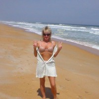 So are guessing about my friend before you see the first picture? I have a few Wicked Weasel bathing suits, this one being a favorite of my collection. I will say that it was definitely too bad that I couldn't get in the water this day (much too cold) since like so many other Wicked Weasels, this one goes see thru. Well, I did the next best thing and starting removing it...