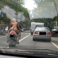 Hi Everyone, We were on our way back to Vegas after visiting the coast. There's not much to look at when you're driving through the desert. Boris got the camera out when we stopped at a gas station to fill up and buy more water. Of course I played along! We continued to look for a place to pull over and take pics when all of a sudden this road came up out of nowhere. It looked like it went nowhere too. LOL! Right by the freeway exit there was a huge hill. I suggested we climb it and take some shots from the top. B didn't think we could make it that far since it was over 100 degrees out and I was wearing my high wedge sandals. I finally convinced him so we grabbed our two bottles of water and started up. By the time we got to the top the first bottle of water was already about gone. It was sooooooo hot! I took my clothes off, what little I had on, fast. After posing for a while, I got so overheated I had to pour some water over me to cool off! It felt so good. Since we didn't have anymore water we couldn't stay any longer. I had a blast playing naked on top, what a view, the desert looks so much different from on high! Felt like we were on top of the world! When we had climbed back down the hill and got in our car we were both so hot I put in a request for a chocolate milk shake at Denny's. Thanks everyone, for all the sexy messages. I really do love knowing you're looking on and hearing what you think. Luv, Natasha n' Boris xoxo