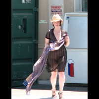 Hey VoyeurWebbers,I needed to change into my outfit for the Angel's Stadium shoot and Damien suggested that I could have some fun at this local parking lot. Kinda got caught, though. But the guy didn't seem to mind. Damien was about 50 yards away trying to get some perspective shots and was laughing his ass off when he saw the guy with his camera phone. Guess I'm a little used to being in front of a lens, cuz my first shoot at the polling place last summer I was a little exposed there, too.And all you prospective fans, I'll sign you up for the club if'n you give me a valid email address. If it bugs out, I can't send you any pics. That means you guys, livin_dildo and darkrider. I figured out the other ones, cuz you guys kept giving me such nice comments. And if I haven't mentioned you yet, wow guys, give a girl a break, I just hit 250 e-ddresses. Woot. Brandt, you know who you are. =DSo, that said, here's a pre-Christmas shout out to another big batch of you all. First off, here's another tip of the hat (or in my case, a drop of the panties) to Elrod. You know why, big guy. And to more of my newest fans: Locals - Tom, SoCalDave, PlanePilot, Buddy, InTownForNow, LuisG and Jondular and Orange County's Ron, CJ and Rod; Distant fans from far away - Canada's Digger (why haven't I mentioned you before?) and Tyler, Dirk from France, Wearshelsing from Mexico, Leon from South Africa, Luca & Sara from Italy and Johan from Holland; and from all over the USA - from the oh-so-pervy state of North Carolina Beau (another old fan I seemed to have not mentioned) and Samuel, and Danny G in South Carolina, from Florida Ray/yar and Nicole (you're hot girl); and Michigan (the state that's catching up to NC) gump Rob, pl Fred, Erik and SpinBuzz, Texas Mary and Niki (two more smokin' babes), and my "location to remain unknowns" ironhold Matt, BigDirtyD, gentleman TR, Tig69, Rush, BowlJoeT, VW_J and Thumper (y'all let me where you're from if you're okay with it). And to the rest of you fans, I've got more contributions coming.Oh, yeah, and keep giving me ideas. I've got a Knott's Berry Farm set and a Hollywood Bowl set (prolly have to go back and take some more pictures to make that worthwhile) and some great shots from the Queen Mary in Long Beach.Have a great holiday,Kisses~ φhi