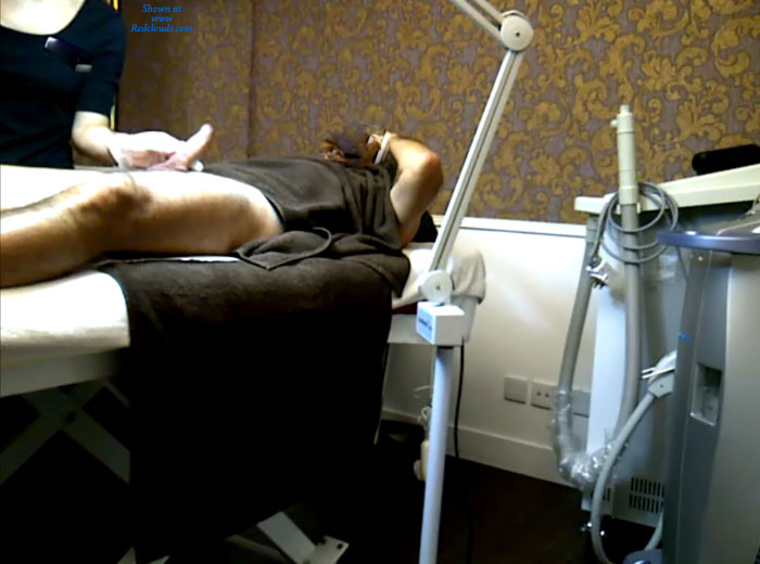 I frequent a local waxing salon. I've gone there for over 2 years. Ling, the wax aesthetiician is an adorable twenty something with the most delicate hands. I wax my balls, crack and shaft only so that Ling can handle them for a 45 minute period...without jerking me off. Think about it ... a non sexual encounter with a pretty thing that fondles your privates fr almost an hour. We chat about just anything. I always sport wood. She told me its not a problem and its usual. I fantasize about her handling me and one day i decided to test the waters.. and ejaculate. Sure enough, I kept my powder dry for a few days to build up a nice load. The day i went in she was particularly chatty about this and that, all while my cock hardened to full mast. Of course, my legs are spread wide like a frog on his back and she chats while being an inch from my exposed cock. Always, towards the end of the waxing, she focuses on the hair between the shaft and the pelvis. The hair is particulary thicker there and to get to it, she has to push my erection against the natural angle... she has to hold it for about 1 to 2 minutes. the immense pleasure is beyond description. That day as she held it in position I gushed...hot cum unloaded all over my cock and her hand. I apologized profuselly as it was "embarassing" . To my surprise, she simple dabbed the cum with a towel and said its ok, it sometimmes happens! Wow...it does? Now i always want to cum but I dont want to overdo it.. so i wait. these pics are from a recent session.. no cumming here but you get the "gist of it"