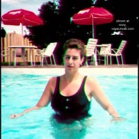 Kate: These pics were taken at a pool in an Italian villa. She was hot (from the sun, that is) and had to take a dip.Two other couples were making their way up to the pool (as she points out).Ý I told her, "Go ahead, they can't see you (yet)", and she did. I hope you enjoy seeing her as much as I, and, I think, the other guests did.Nice tan-lines, eh? Please delete any reference to name or address.
