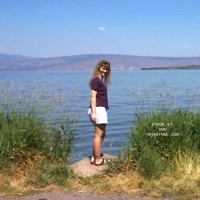Here are some more pics of wife on vacation the 4th of July week. As I said in the last contri, she NEVER wears panties on vacation. I woke her up at 6am one morning and she put on this T-shirt with nothing else and we went to the beach and walked up and down the beach picking up shells until 10:00am. She made sure she found a shell to pick up whenever she was being overtaken from behind. I was having some trouble hiding my "excitement" from the passersby, but as most were looking at her instead of me, they probably didn't notice the tent in my shorts.